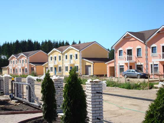 В Ленинградской области в настоящее время, помимо класса «элит», как уже говорилось, есть недвижимость класса «комфорт», которая представлена не только отдельными домами в коттеджных поселках, но и таким видом застройки как «таунхаусы», что в переводе с английского языка означает (и этим обозначает их сущность) «дома - город». Этот вид домов отличается от остальных своим проектом: это два-три дома, объединенные общей системой коммуникаций и участком земли, с отдельными входами и гаражами. Они, как правило, дешевле всех, даже домов из класса «комфорт», но это не значит, что менее качественны. Просто наличие у них общей системы коммуникации делает их стоимость при строительстве ниже.